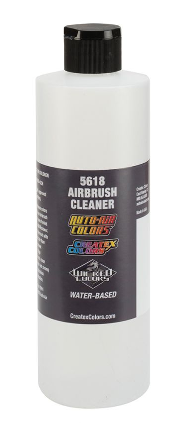 5618 is a mild, water-based cleaner perfect for flushing Createx paints and keeping your tools operating smoothly. To remove dried paint, use 4008 Restorer followed by 5618 Airbrush Cleaner. Refer to CreatexTech.com for more information.