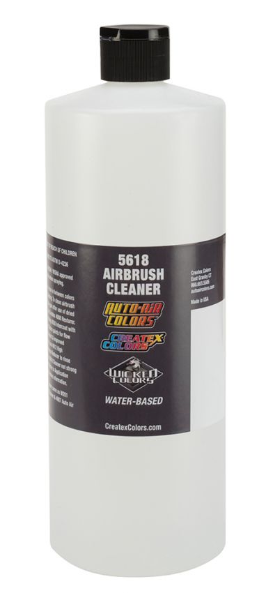 5618 is a mild, water-based cleaner perfect for flushing Createx paints and keeping your tools operating smoothly. To remove dried paint, use 4008 Restorer followed by 5618 Airbrush Cleaner. Refer to CreatexTech.com for more information.