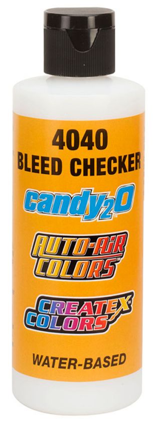 4040 Bleed Checker is a water-based, acrylic-aliphatic urethane clear which is sprayed over candy2o colors to prevent dyes from seeping up into overlaying layers of paint. Apply straight from the bottle. Refer to CreatexTech.com for more information.