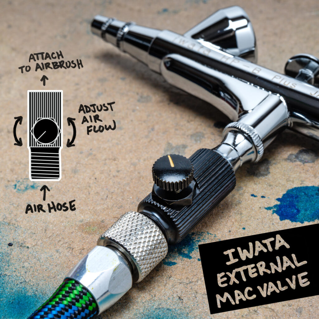 That means you can dynamically lower air pressures on the fly for detailed spraying, dial in super low pressures for fine and coarse stipple textures (think freckles). One of the most popular airbrush accessories, the External MAC Valve will change the way you airbrush.