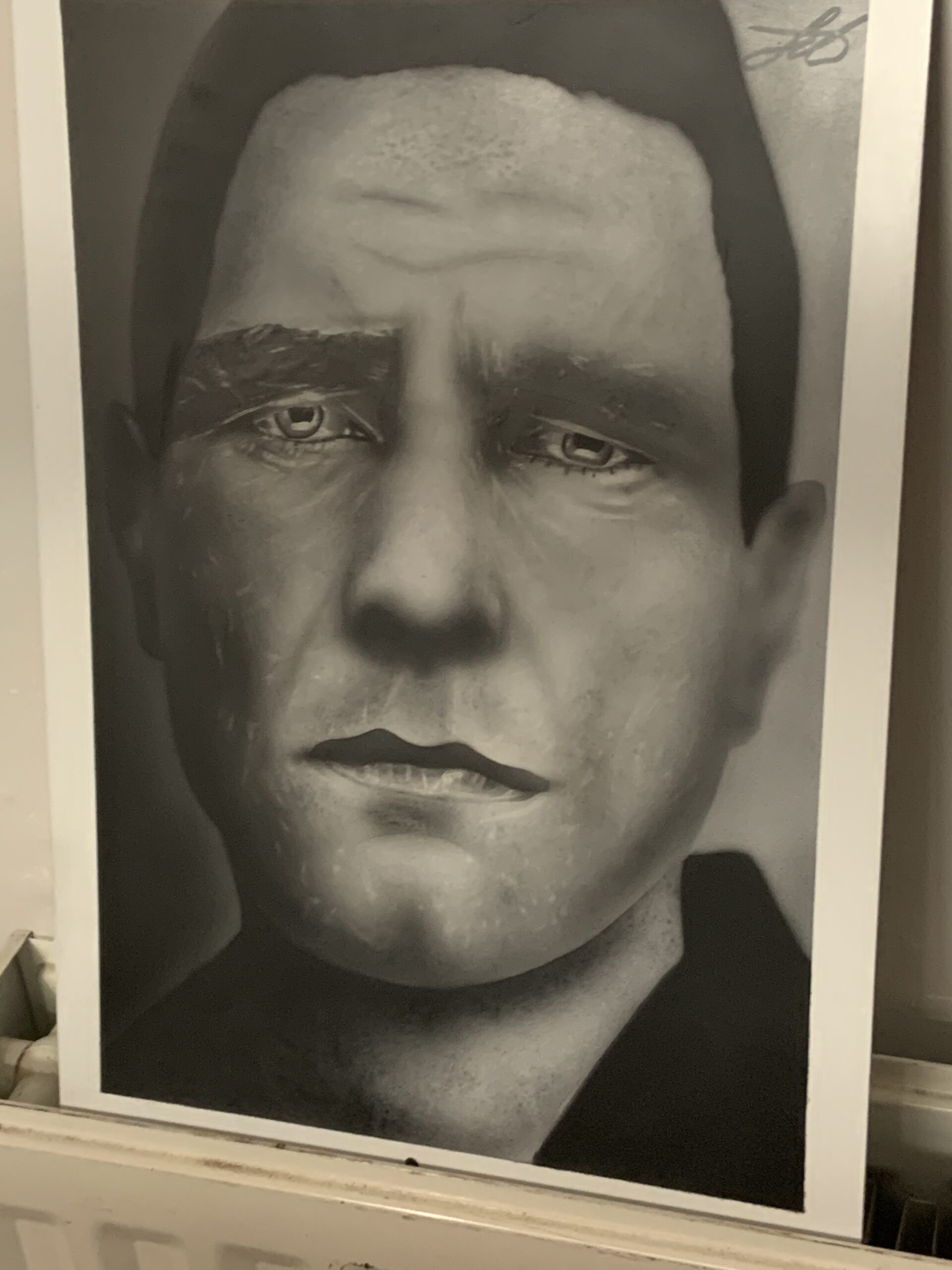 Monochromatic portrait of vinnie johns my self I have been airbrushing a year now and I try to paint almost every day my dream is to become successful and make
