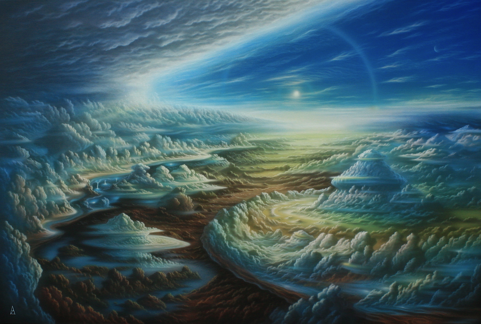 Painting Acrylic inks on canvas, Title JUPITER STORMS. Painted with a Iwata cm-B Airbrush.