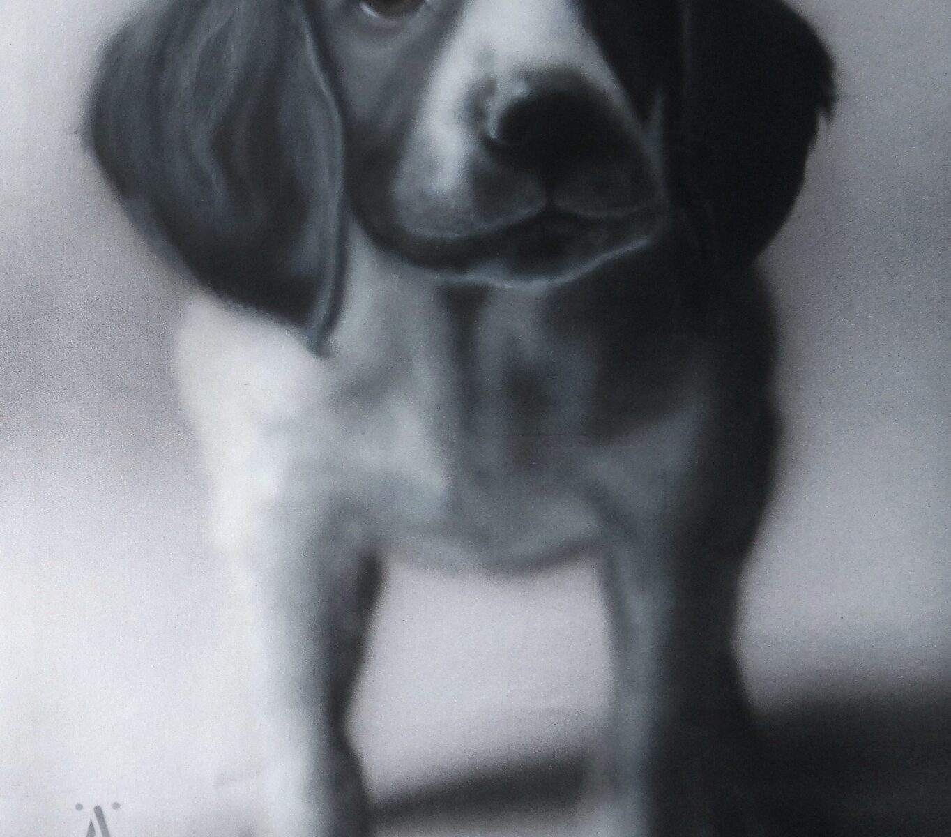 Name: andrew c stewart Website: Iwata Equipment Used: Iwata CM-B Airbrush, HP -SBS Airbrush Additional Info: Painting Acrylic inks on wood, Title PUPPY MANS BEST FRIEND.