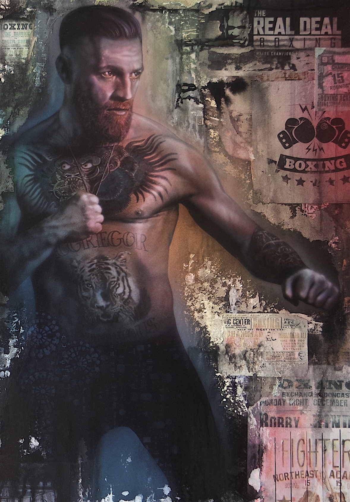 Airbrush Painting Acrylic inks on wood, Title FIGHT CLUB.