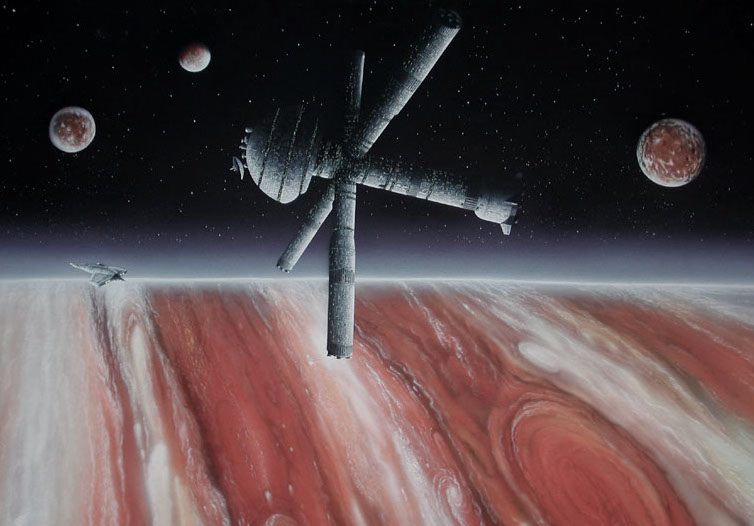 Name: andrew c stewart Website: Iwata Equipment Used: Iwata CM-B Airbrush, HP -SBS Airbrush Additional Info: Airbrush painting Acrylic on wood from the Artworks gallery London. Title JUPITER PROBE. Painted for the Planetary Society USA.
