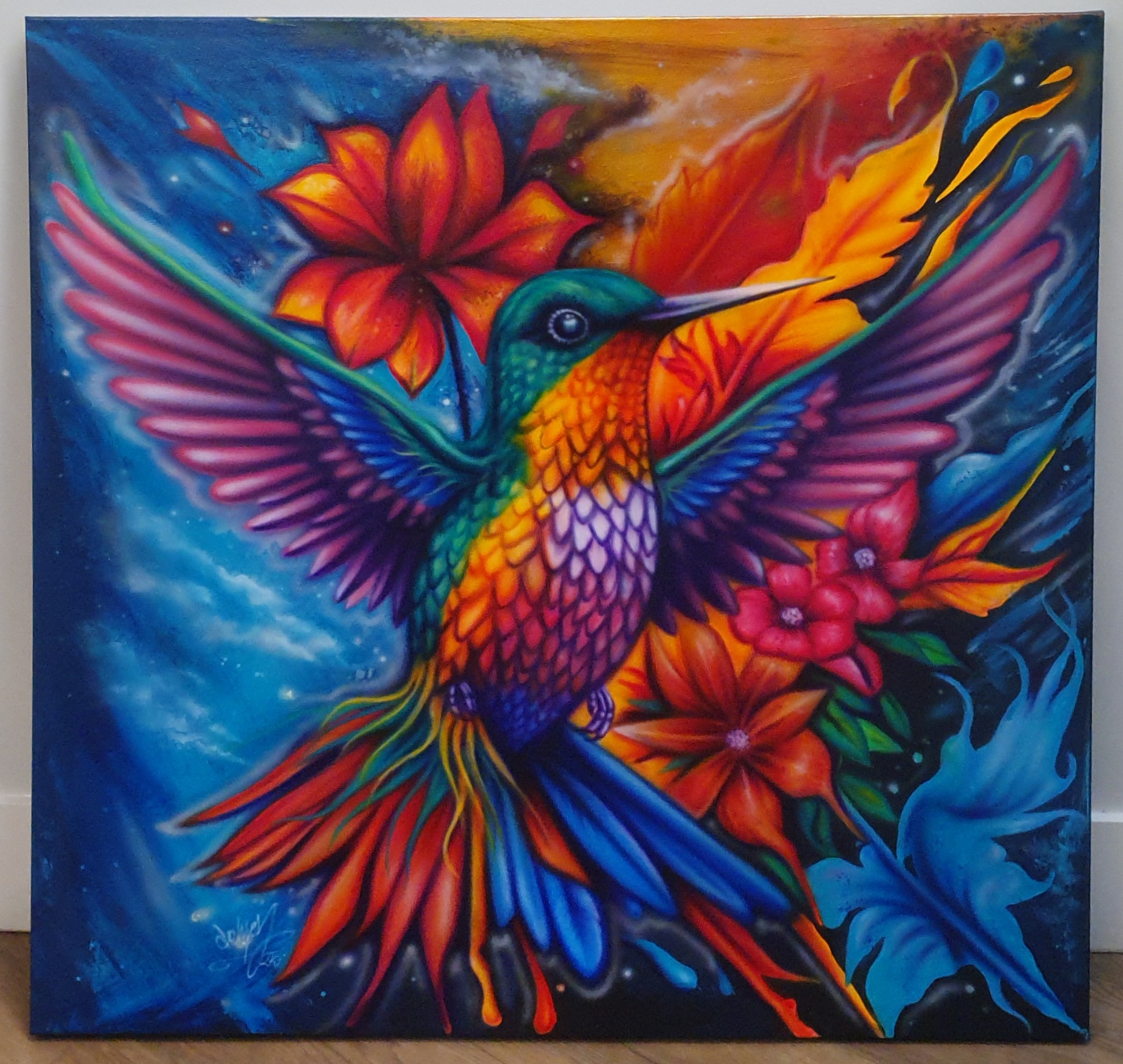 Mexican artist demonio castillo art done in California on canvas using liquitex acrylic .