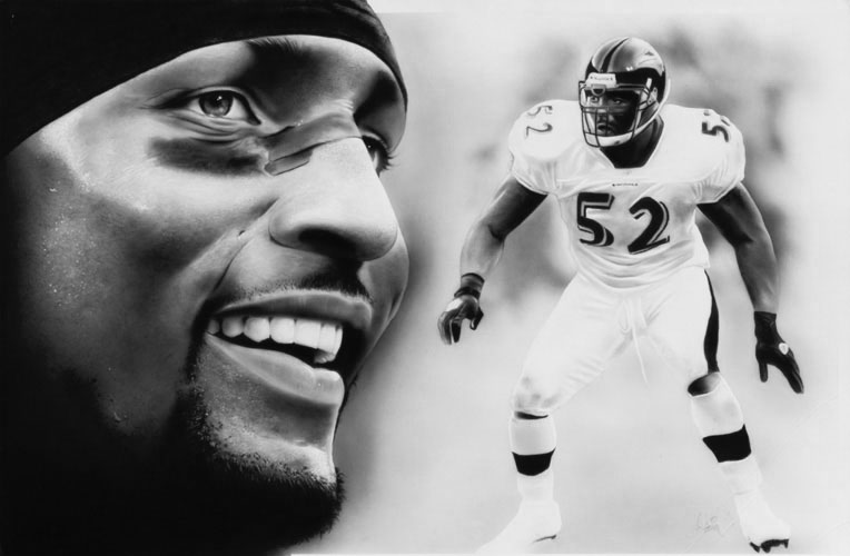 Name: adrian Website: Iwata Equipment Used: Iwata Eclipse HP-BCS Additional Info: This piece features Ray Lewis on a 20×30 pressed board, created in mixed media using the Iwata Eclipse HP-BCS.