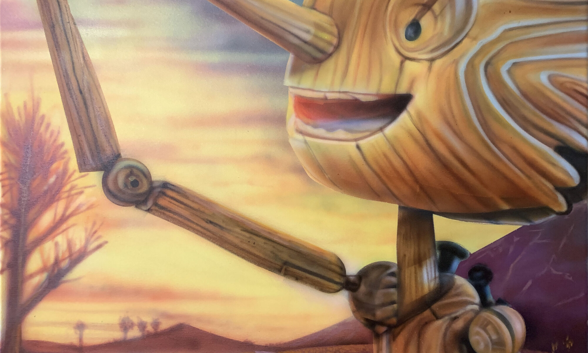Name: Raman Bhardwaj Website: Iwata Equipment Used: HP-SB plus, Revolution CR Additional Info: When I went to watch Guillermo del toro’s Pinocchio I came back inspired and wanted to paint the wooden boy Pinocchio with my new Iwata airbrush HP-SB Plus. I also used Iwata Revolution CR for larger coverage. Used some painter’s masking tape for sharp edges. It’s on a 30×40 inches canvas using Golden high flow acrylics.