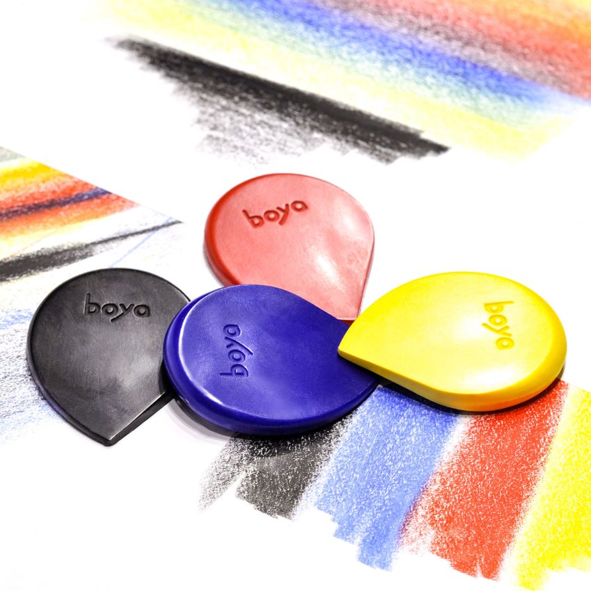 Boya Crayons are non-toxic drawing tools with a unique shape that creates a myriad of effects. Just hold the Boya in a different position in hand and watch as the pigment disperses differently on the surface. Create fine lines or get full coverage. Achieve fast saturation or softly shade and blend color. All with one crayon. With so much versatility, Boya gives you an expressive drawing experience using natural, intuitive color. No rules, just start drawing!