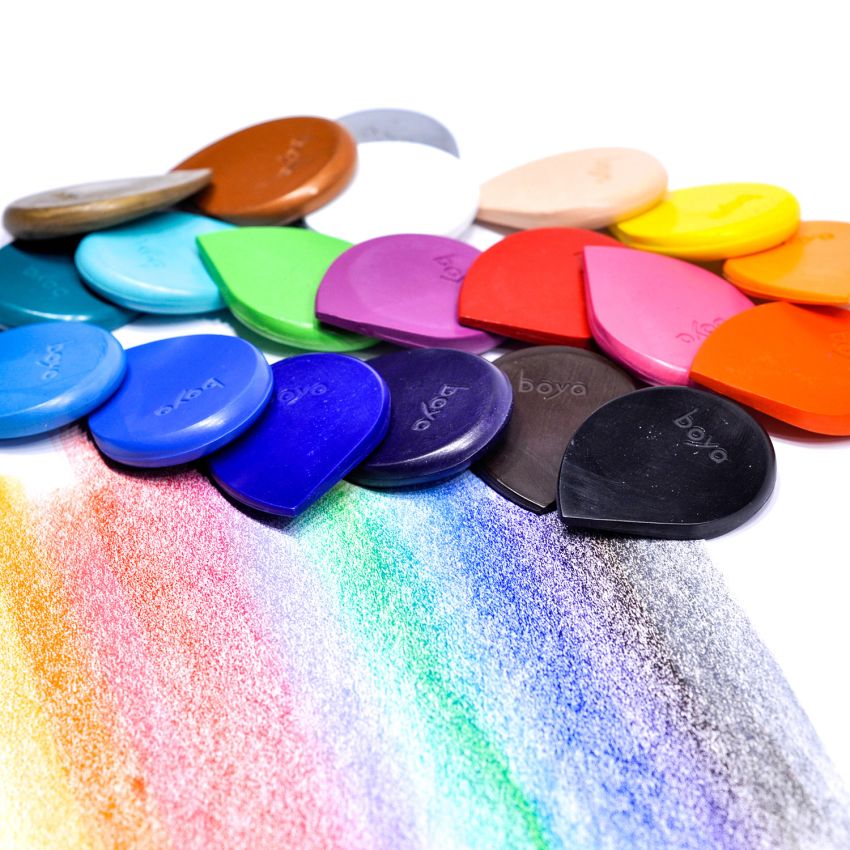 Boya Crayons are non-toxic drawing tools with a unique shape that creates a myriad of effects. Just hold the Boya in a different position in hand and watch as the pigment disperses differently on the surface. Create fine lines or get full coverage. Achieve fast saturation or softly shade and blend color. All with one crayon. With so much versatility, Boya gives you an expressive drawing experience using natural, intuitive color. No rules, just start drawing!