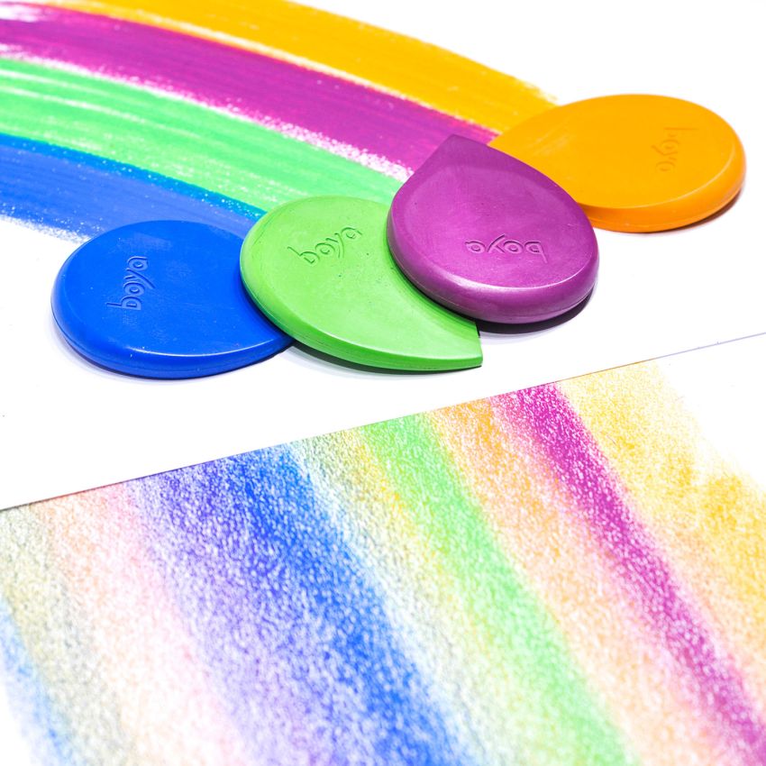 Boya Crayons are non-toxic drawing tools with a unique shape that creates a myriad of effects. Just hold the Boya in a different position in hand and watch as the pigment disperses differently on the surface. Create fine lines or get full coverage. Achieve fast saturation or softly shade and blend color. All with one crayon. With so much versatility, Boya gives you an expressive drawing experience using natural, intuitive color. No rules, just start drawing!