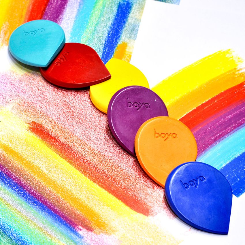 Boya Crayons are non-toxic drawing tools with a unique shape that creates a myriad of effects. Just hold the Boya in a different position in hand and watch as the pigment disperses differently on the surface. Create fine lines or get full coverage. Achieve fast saturation or softly shade and blend color. All with one crayon. With so much versatility, Boya gives you an expressive drawing experience using natural, intuitive color. No rules, just start drawing!
