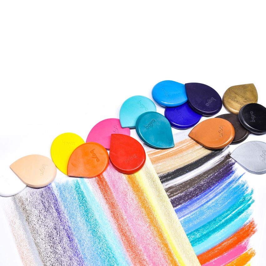 Boya Crayons are non-toxic drawing tools with a unique shape that creates a myriad of effects. Just hold the Boya in a different position in hand and watch as the pigment disperses differently on the surface. Create fine lines or get full coverage. Achieve fast saturation or softly shade and blend color. All with one crayon. With so much versatility, Boya gives you an expressive drawing experience using natural, intuitive color. No rules, just start drawing!