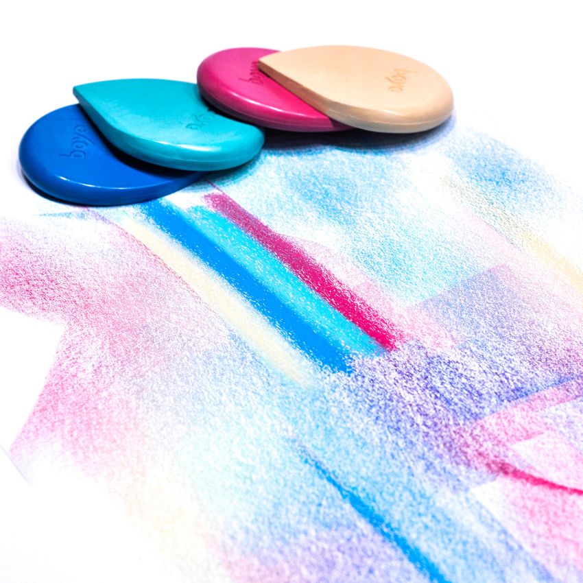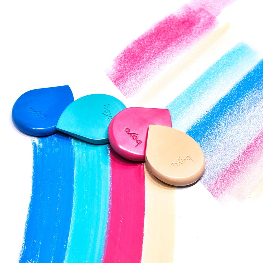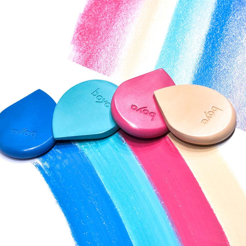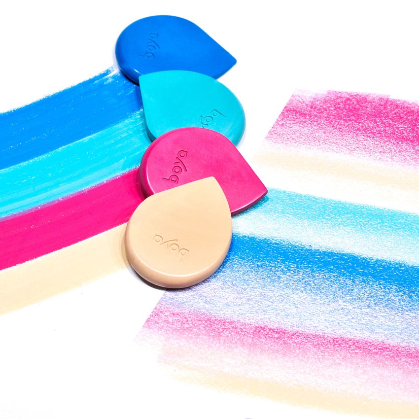 Boya Crayons are non-toxic drawing tools with a unique shape that creates a myriad of effects. Just hold the Boya in a different position in hand and watch as the pigment disperses differently on the surface. Create fine lines or get full coverage. Achieve fast saturation or softly shade and blend color. All with one crayon. With so much versatility, Boya gives you an expressive drawing experience using natural, intuitive color. No rules, just start drawing!