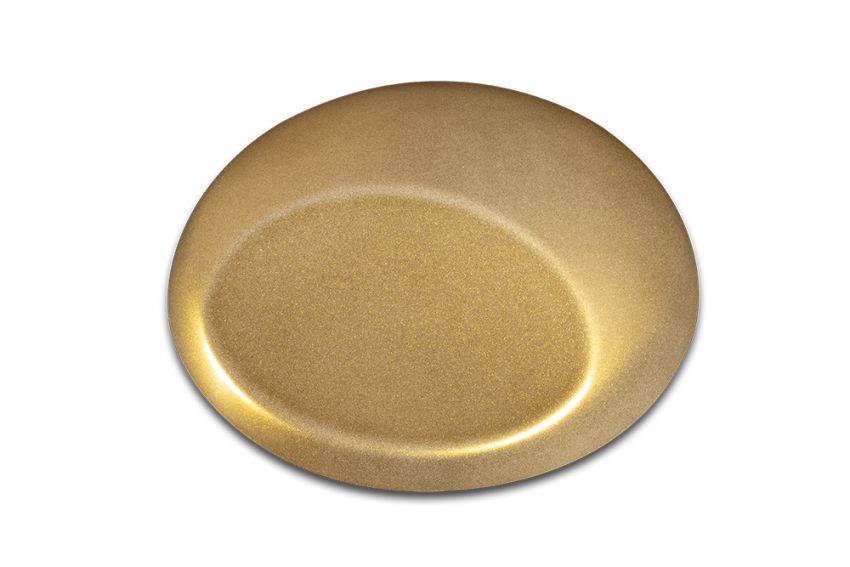 Wicked Gold Chrome is a water-based, multi-surface airbrush acrylic designed for versatility with optimum performance on nearly any project. Golden yellow coated aircraft-grade aluminum combined with a durable resin makes Gold Chrome an excellent choice for interior or exterior applications. Wicked Gold Chrome creates a highly reflective effect when top-coated with a gloss clear such as Createx 4050 UVLS Gloss. Try mixing Gold Chrome in equal parts with our candy2O colors for brilliant, anodized effects.