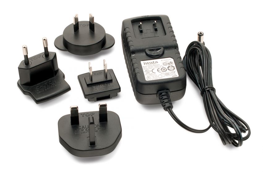 Replacement AC Power Adapter for Iwata Freestyle Air compressor (model # IFS1000) and NEO Air mini compressor (model # IS30UP). Includes a set of four interchangeable international plugs.