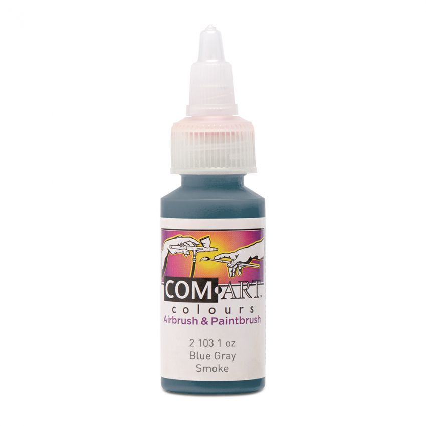 Com Art Colours Water-Based Acrylic Transparent Blue Gray Smoke 1oz For Airbrush And Paintbrush