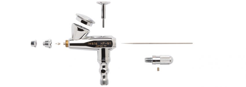 Iwata Revolution HP-M1 Gravity Feed Single Action airbrush features a compact size and easy to operate single action delivery. It has a 0.05 oz / 1.50 ml fluid cup with lid that is ideal when using very small amounts of spray medium.