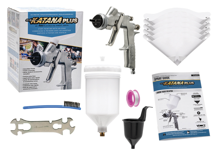 The Katana Plus HVLP Spray Gun offers great value with professional-grade capabilities. Quality components withstand heavy use and work with a wide range of sprayable materials.