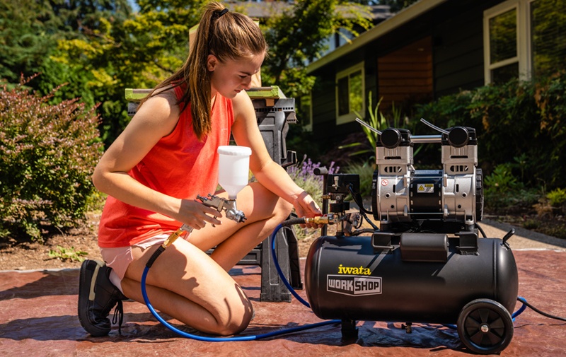 With 2 HP and an 8 Gallon tank, the Iwata Workshop Compressor can tackle nearly any household project.