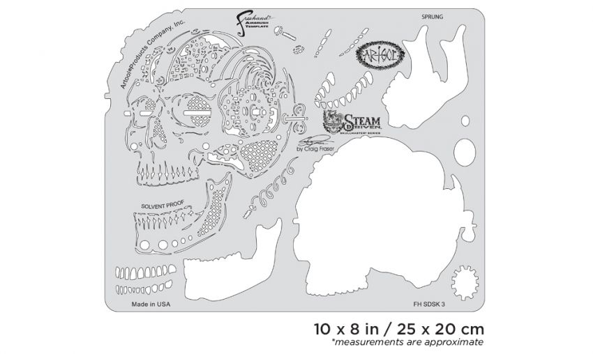 Artool Steam Driven Sprung Freehand Airbrush Template by Craig Fraser. Precision, laser cut templates for highly detailed effects. Solvent Proof mylar construction: great with both solvent and water based paints. Easy to clean. Create your favorite effects with Artool.