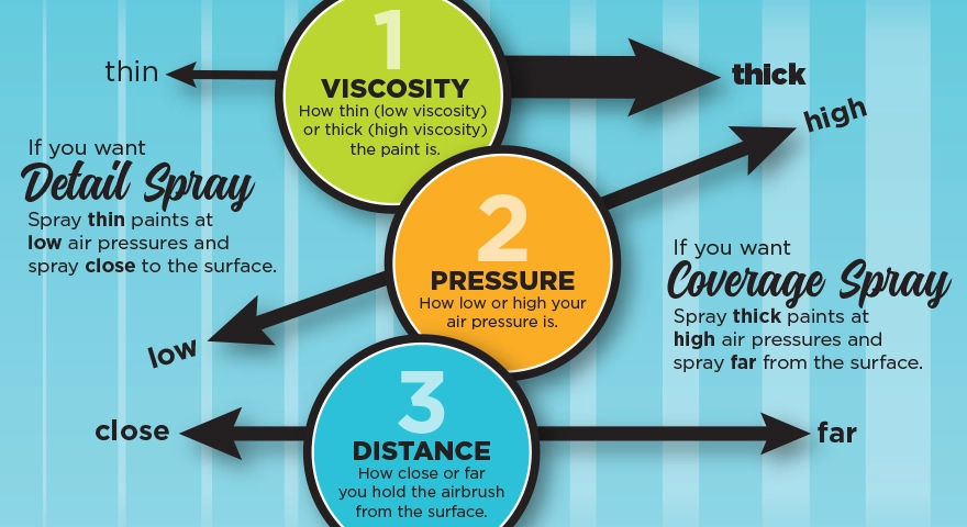 Let's take a look at "The Big 3" key factors that effect your spray: Viscosity, Pressure, and Distance. These three factors all work together.